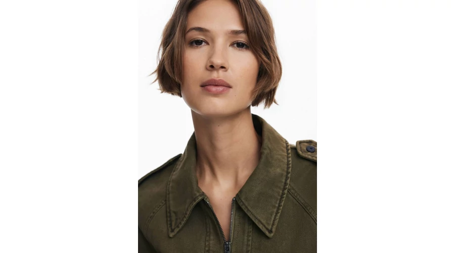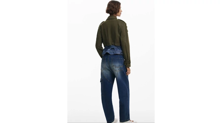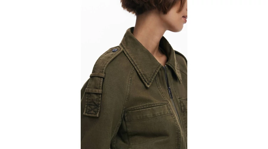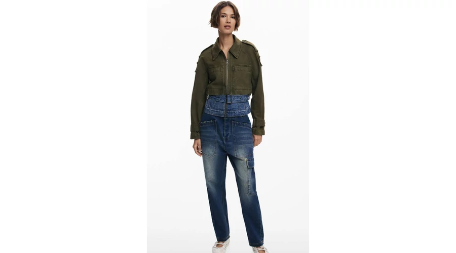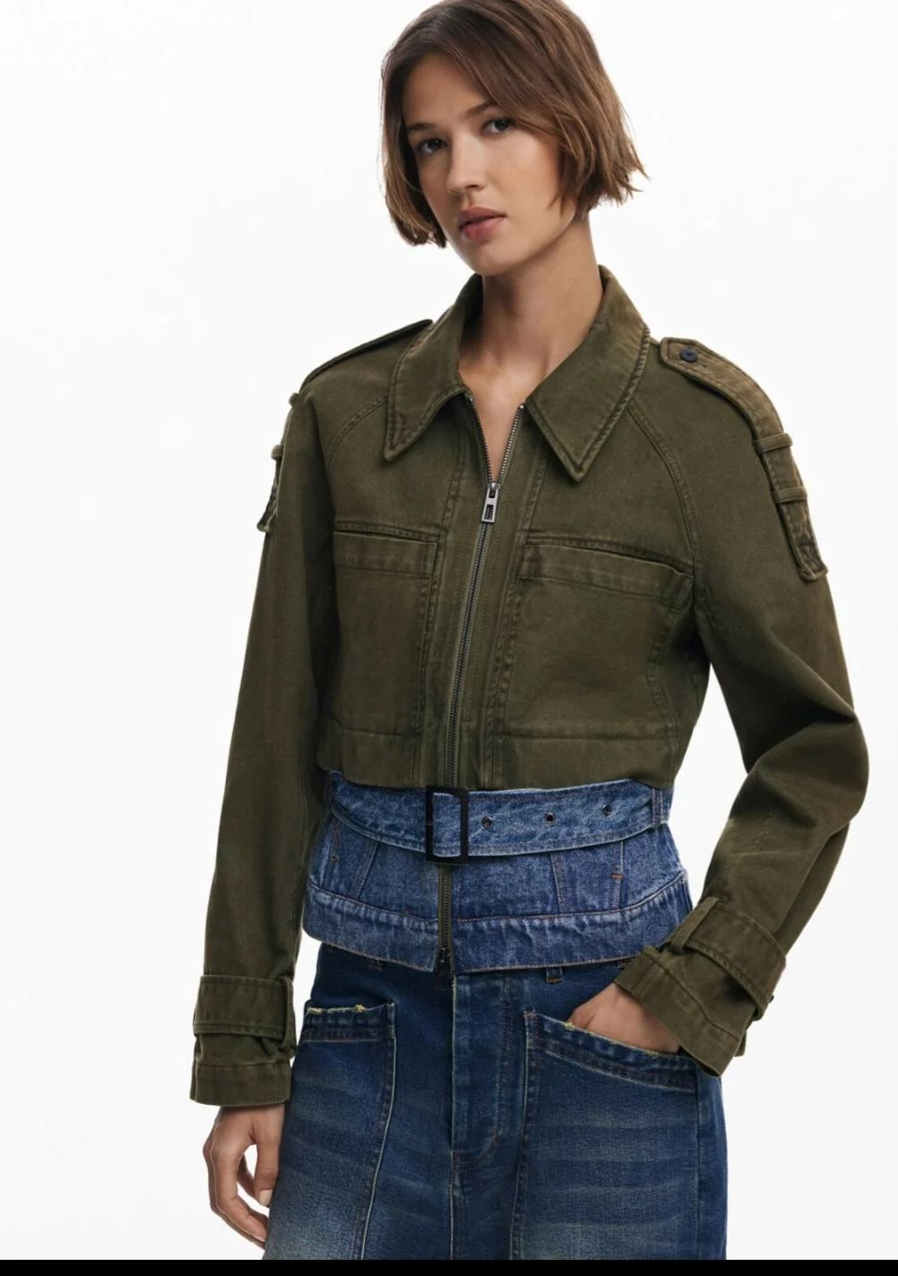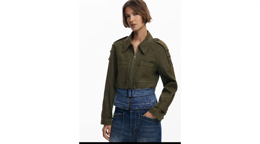 Zöld, farmerral kombinált, cipzáros, rövid Parka, levehető övvel.