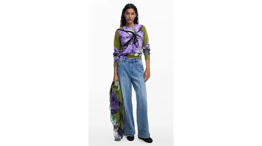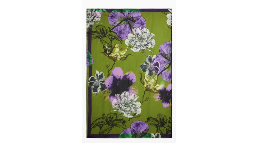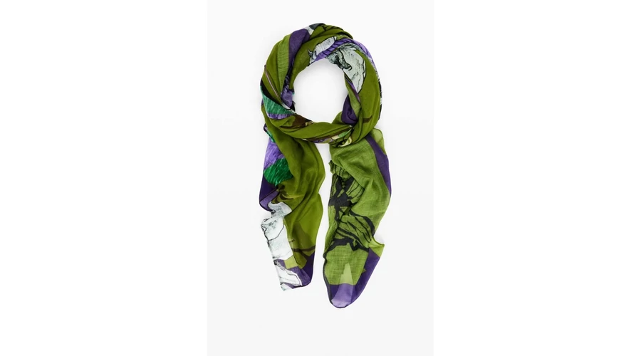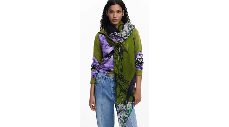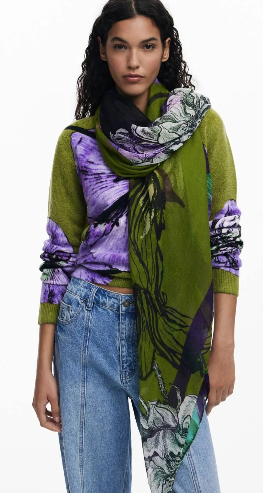 Zöld-lila virágmintás, Lacroix tervezte nagyméretű kendő.